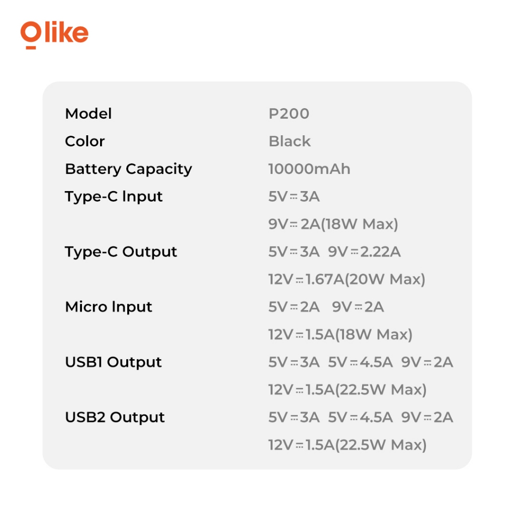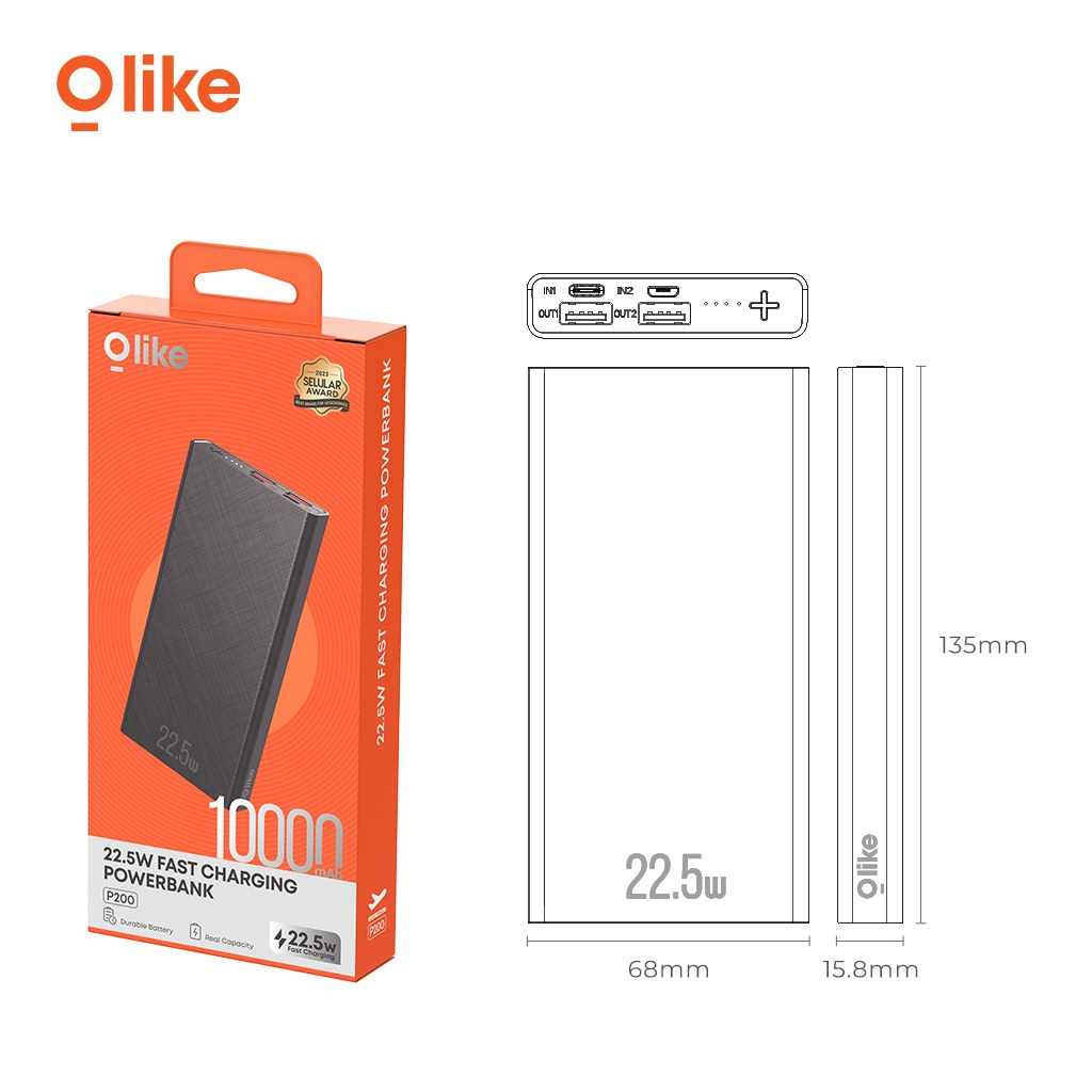 OLIKE POWERBANK P200 FAST CHARGING 22.5W 10000MAH TYPE-C USB OUTPUT DIGITAL POWER DISPLAY ORIGINAL OFFICIAL STORE