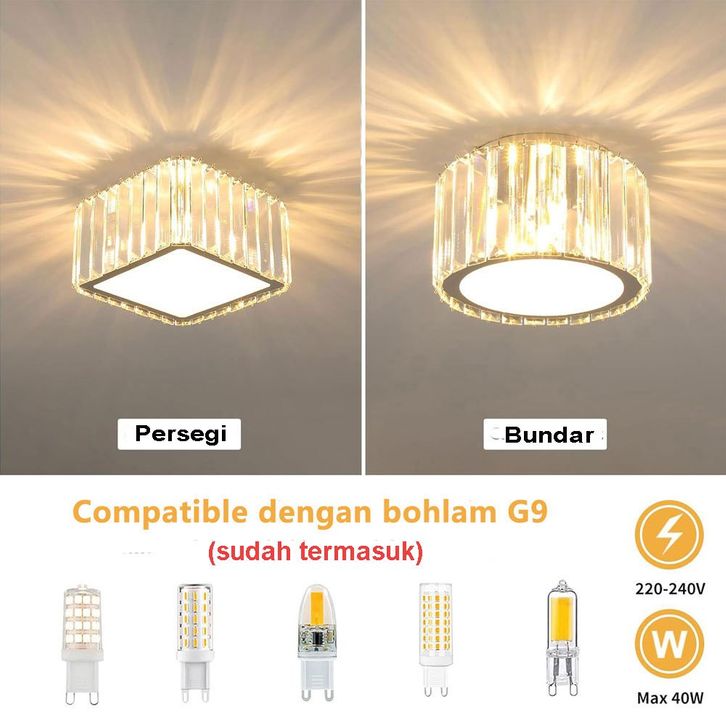 (TERMURAH)Lampu Plafon Kristal K9 - Lampu Kristal Minimalis Plafon 22cm - Material Anti Karat+Bohlam G9 Gratis