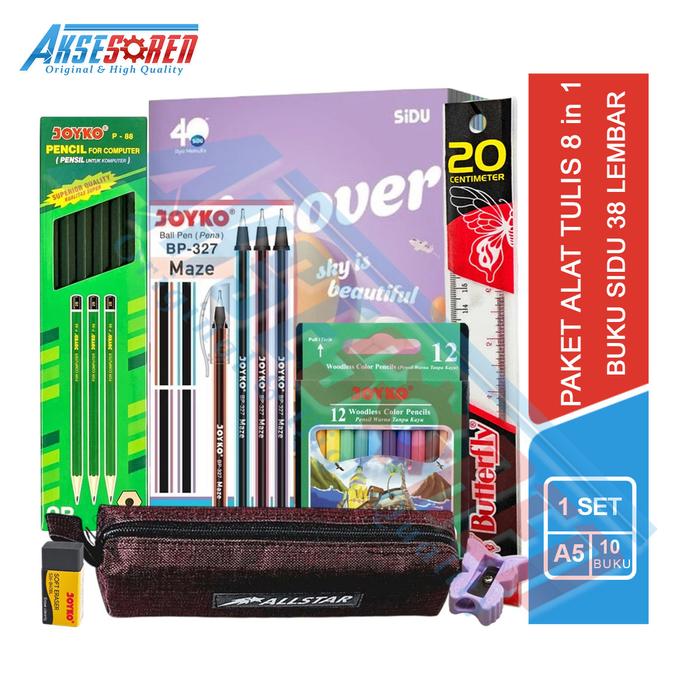Aksesoren Paket Buku Tulis Sinar Dunia 38 Lembar + Alat Tulis [1 Set/8 in 1] /