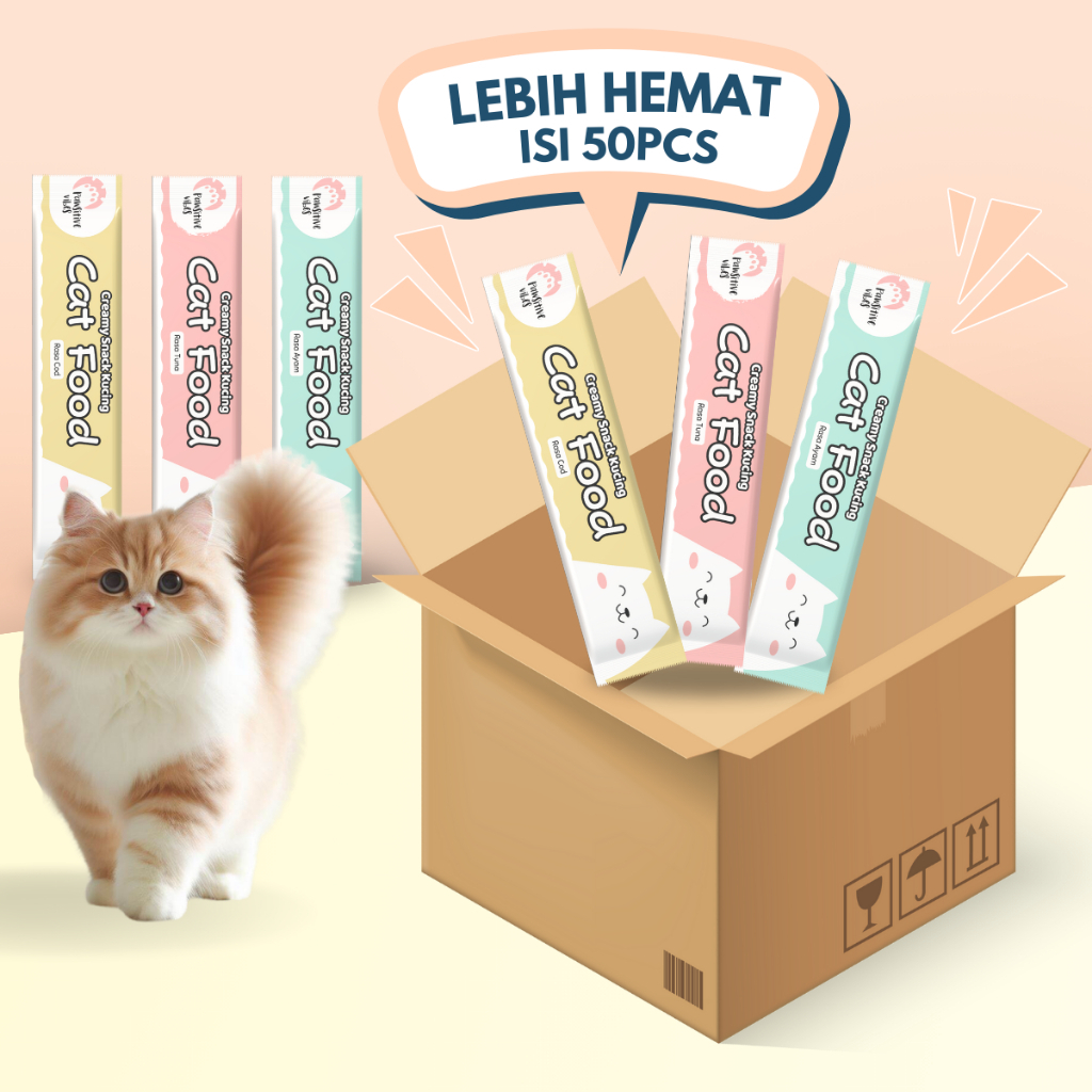 Paket Snack Creamy Kucing Isi 50 Pcs - Cat Food - Paket Cemilan Vitamin Basah Best Seller