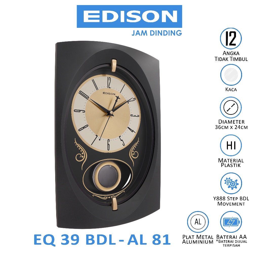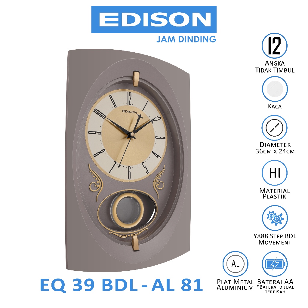 Jam Dinding Edison ES EQ 39 AL81 Bandul Ukuran 360mm x 240mm Aesthetic Mewah Murah Minimalis Bkn Digital