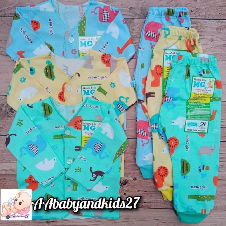 RK - Mom's gift SAFARI SERIES 3Pasang Setelan Baju Bayi Lengan Panjang Full Printing Dasar Warna Usia Newborn SNI Nyama