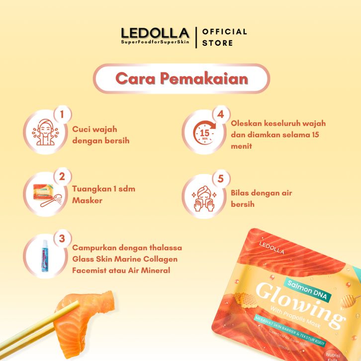 LEDOLLA - Masker Salmon DNA Glowing | Masker Wajah Bubuk Organik Merawat Skin Barrier & Tone up | Facial Mask Mengandung