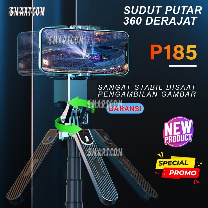 Smartcom Tripod Bluetooth P180 P185 Tongsis Selfie Stick Remote Control Hand Stabilizer P180 HP 360 Derajat Tinggi 1.8m