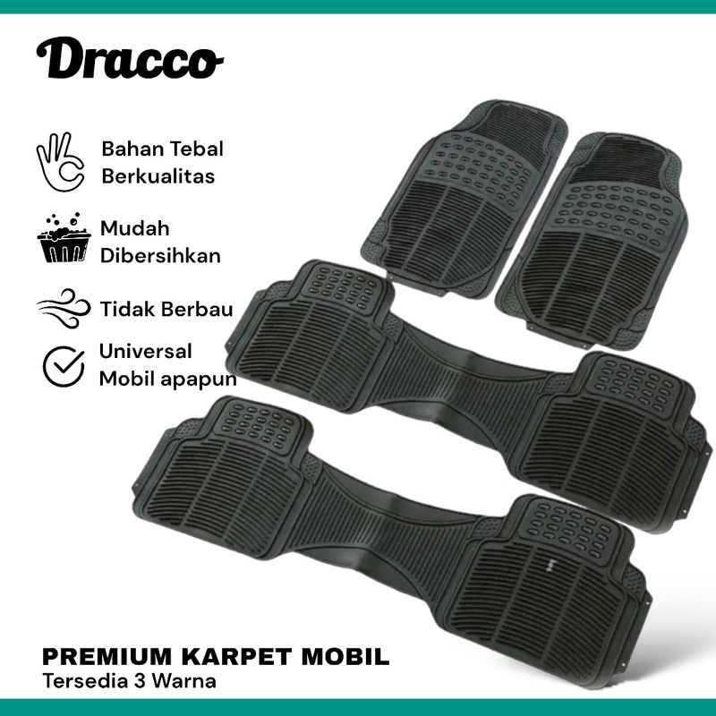 KARPET MOBIL 3 BARIS DRACCO TEBAL – UNIVERSAL, ANTI SLIP, MUDAH DIBERSIHKAN, TIDAK BERBAU, AWET
