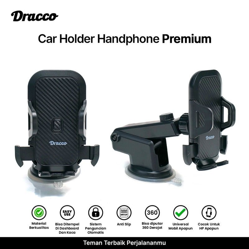 HOLDER HP MOBIL DASHBOARD & KACA DRACCO-CAR PHONE HOLDER 360° ANTI SLIP KUAT UNIVERSAL AUTO LOCK