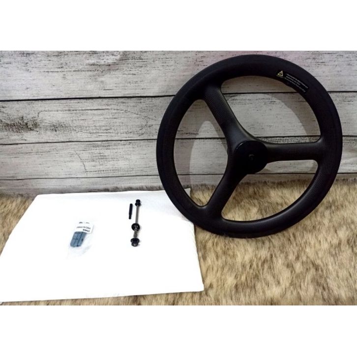 L. wheelset 3spoke carbonician 16 inch 349 brompt0n (depan) 3k