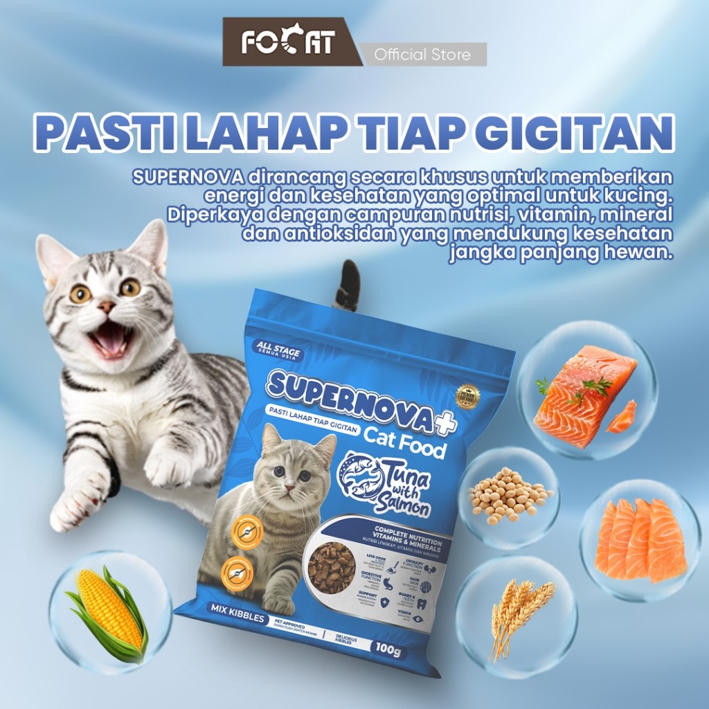 [100 PERSEN ASLI LOKAL] FOCAT SUPERNOVA MAKANAN KUCING KERING SALMON & TUNA 800GR N47 CAT DRY FOOD SEMUA USIA NO PORK