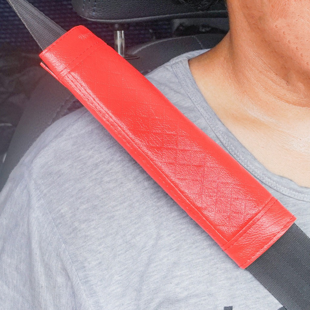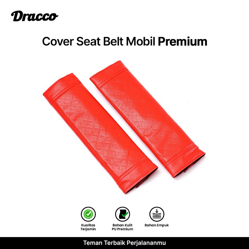 COVER SEATBELT MOBIL 2 PCS DRACCO PREMIUM PU LEATHER – SAFETY BELT PELINDUNG SABUK PENGAMAN - MERAH