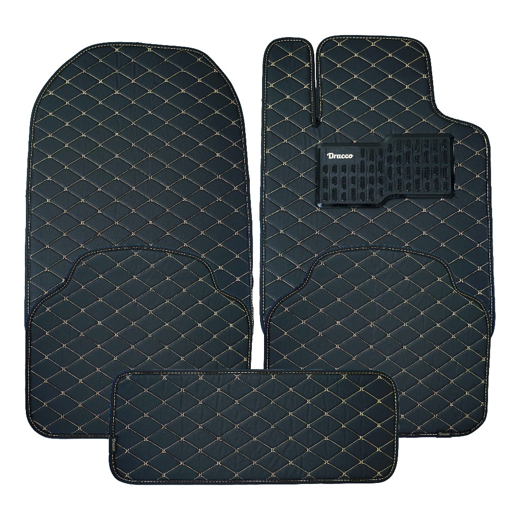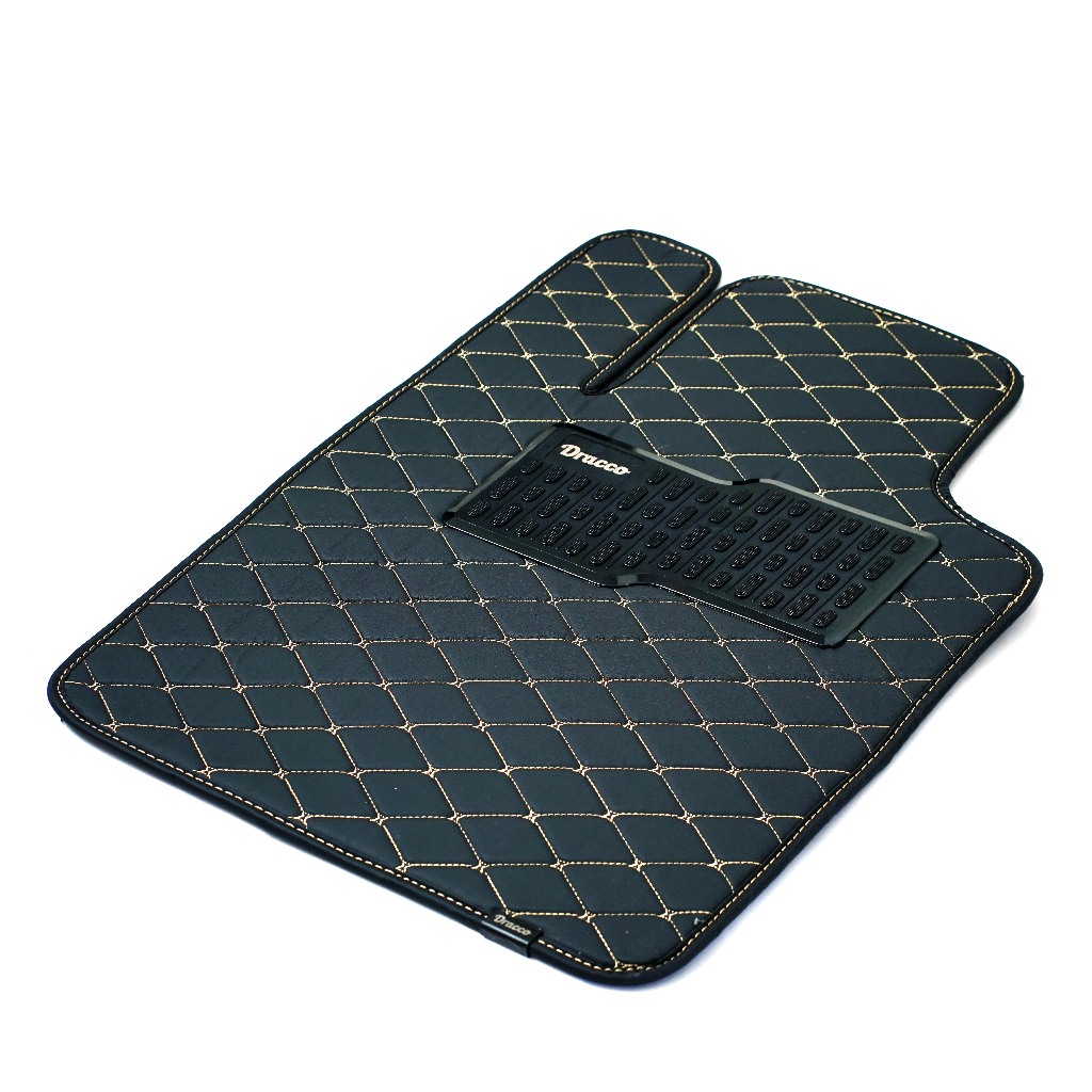 DRACCO KARPET MOBIL KULIT 2 BARIS HITAM CREAM PREMIUM UNIVERSAL WATERPROOF CAR MATS LEATHER