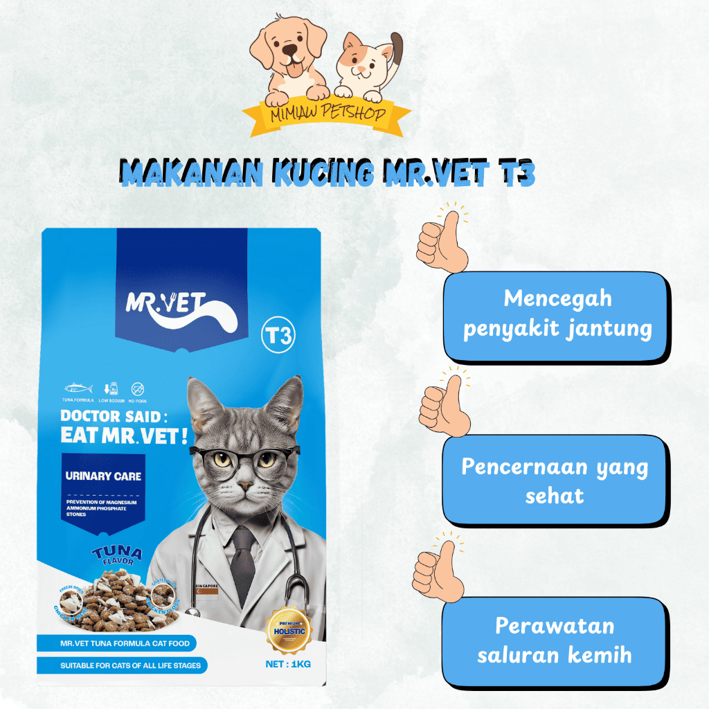 MR. VET T3 URINARY CARE - MAKANAN KUCING KERING 1KG UNTUK MENJAGA DAN MERAWAT KESEHATAN SALURAN