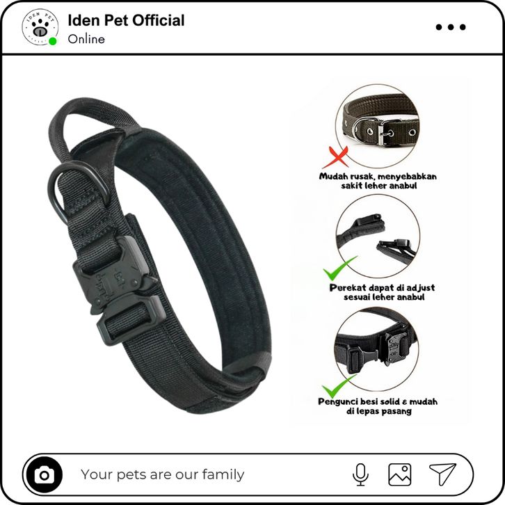 Kalung Anjing Besar Kecil Kuat Rompi Harness Tuntun Militer Tag Nama Dog Army Collar berkualitas terbaik