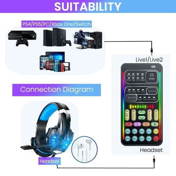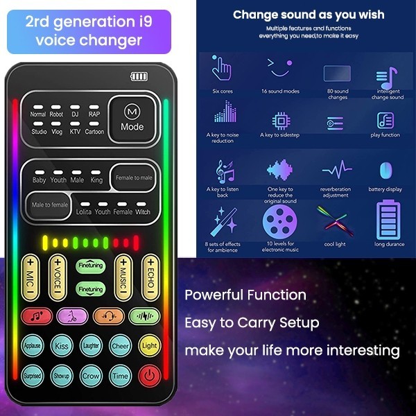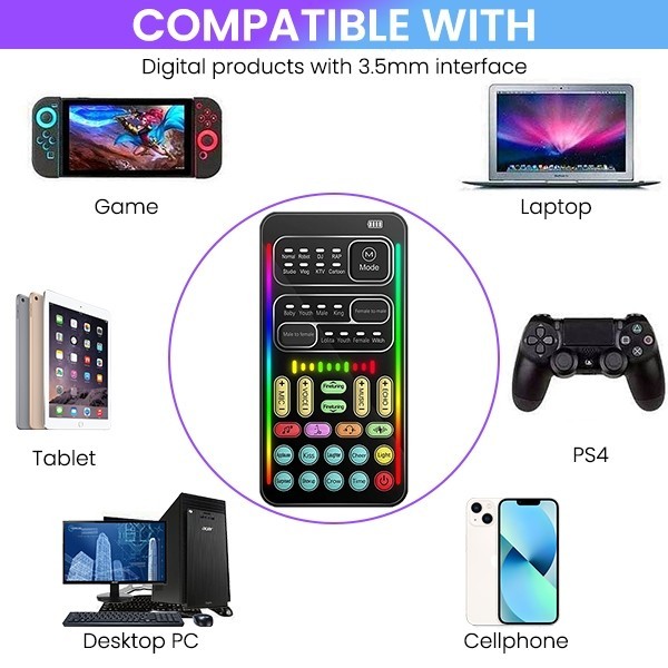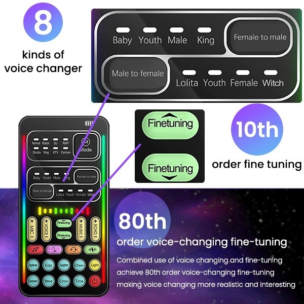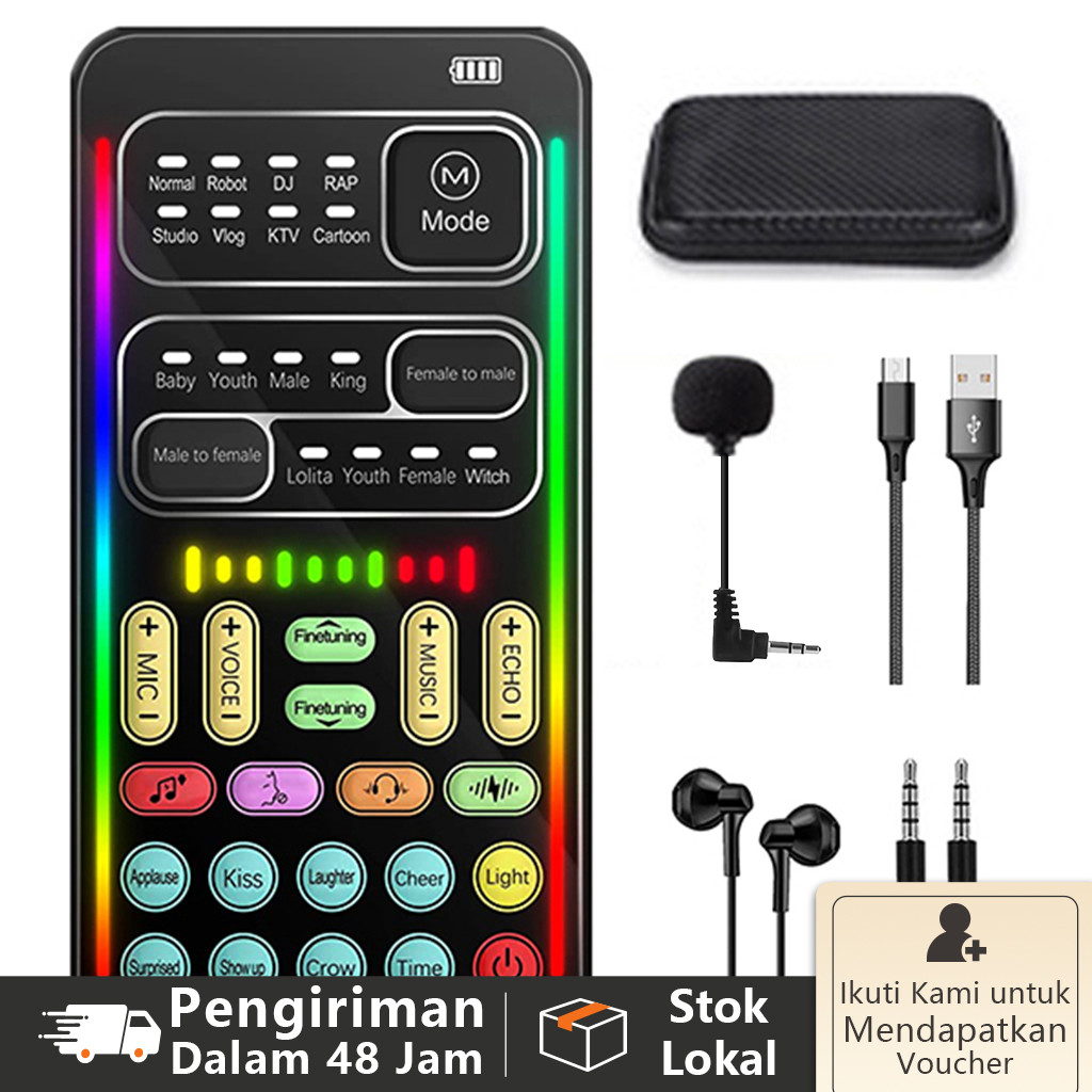 Sound Card 8 Mode Suara Efek Suara & Lampu LED Cocok untuk Game & Vlog / Audio Soundcard / soundcard komplit live