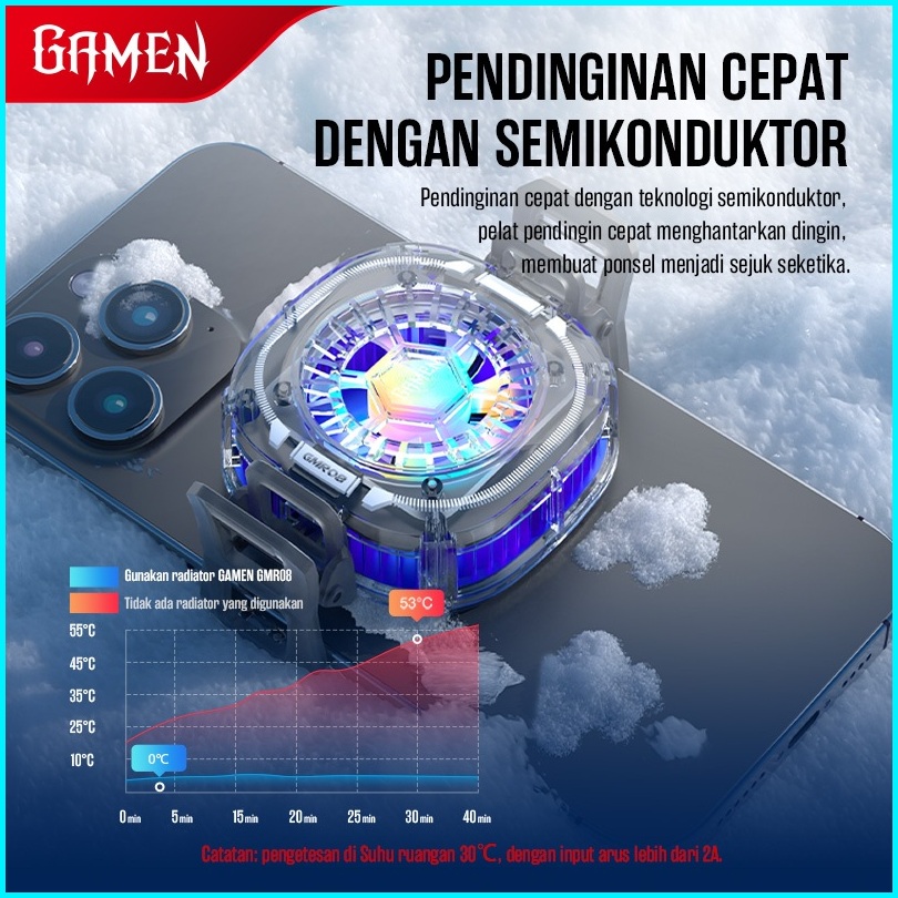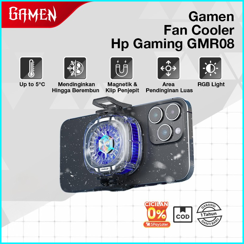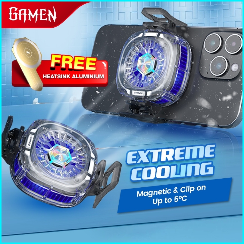 Gamen Fan Cooler Hp Gaming Magnetic Rgb Up To 5 C Gmr08 Dengan Klip Penjepit For Iphone Android Original - Garansi 1 Tah