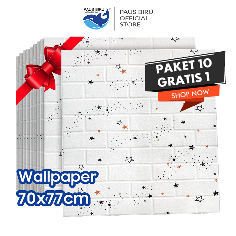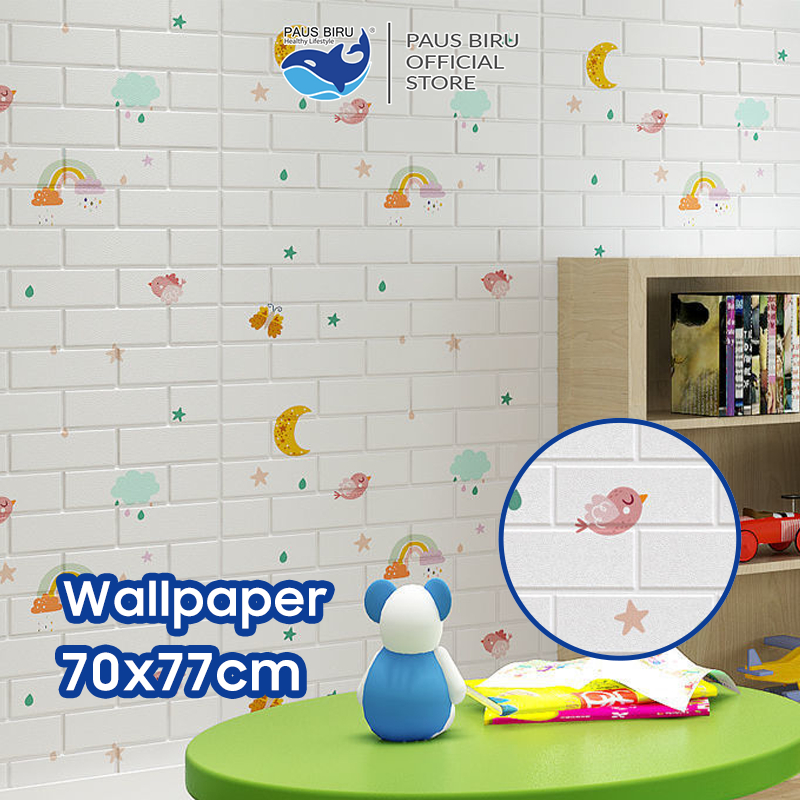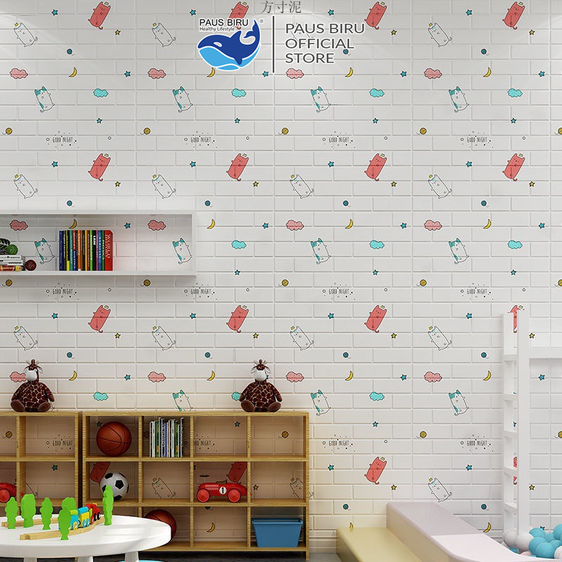 PAUS BIRU - BUNDLE WALLPAPER DINDING 3D BATA / WALLPAPER 3D FOAM 77X70CM (BELI 10 GRATIS 1)