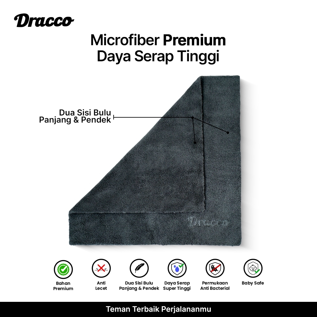 LAP MICROFIBER JUMBO TEBAL 550GSM DRACCO PREMIUM-KAIN SERBAGUNA ANTI LECET SUPER MENYERAP - HITAM