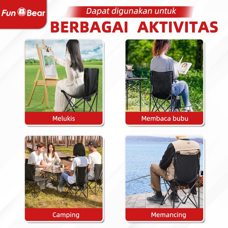 FunBear Kursi Lipat Outdoor Portable Camping Folding Chair Kursi Minimalis Teras Mancing Lipat Set