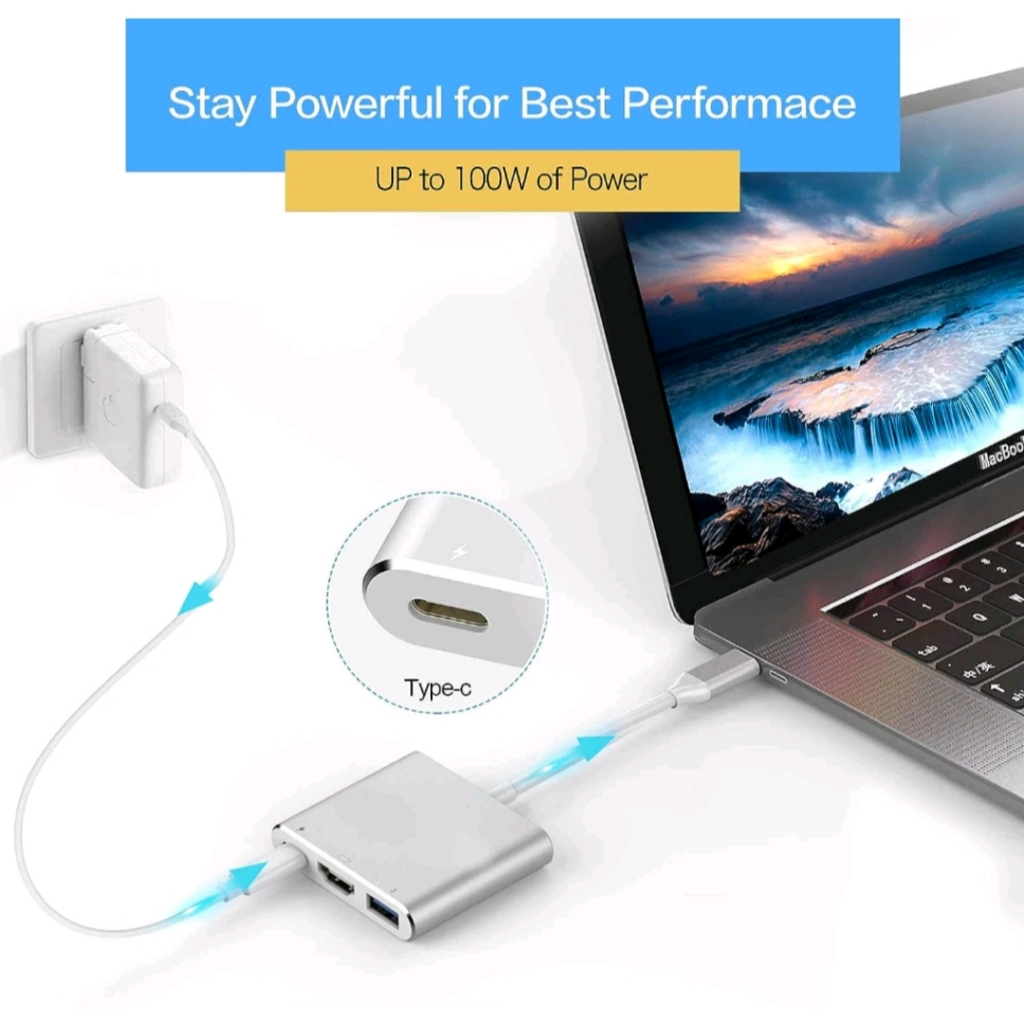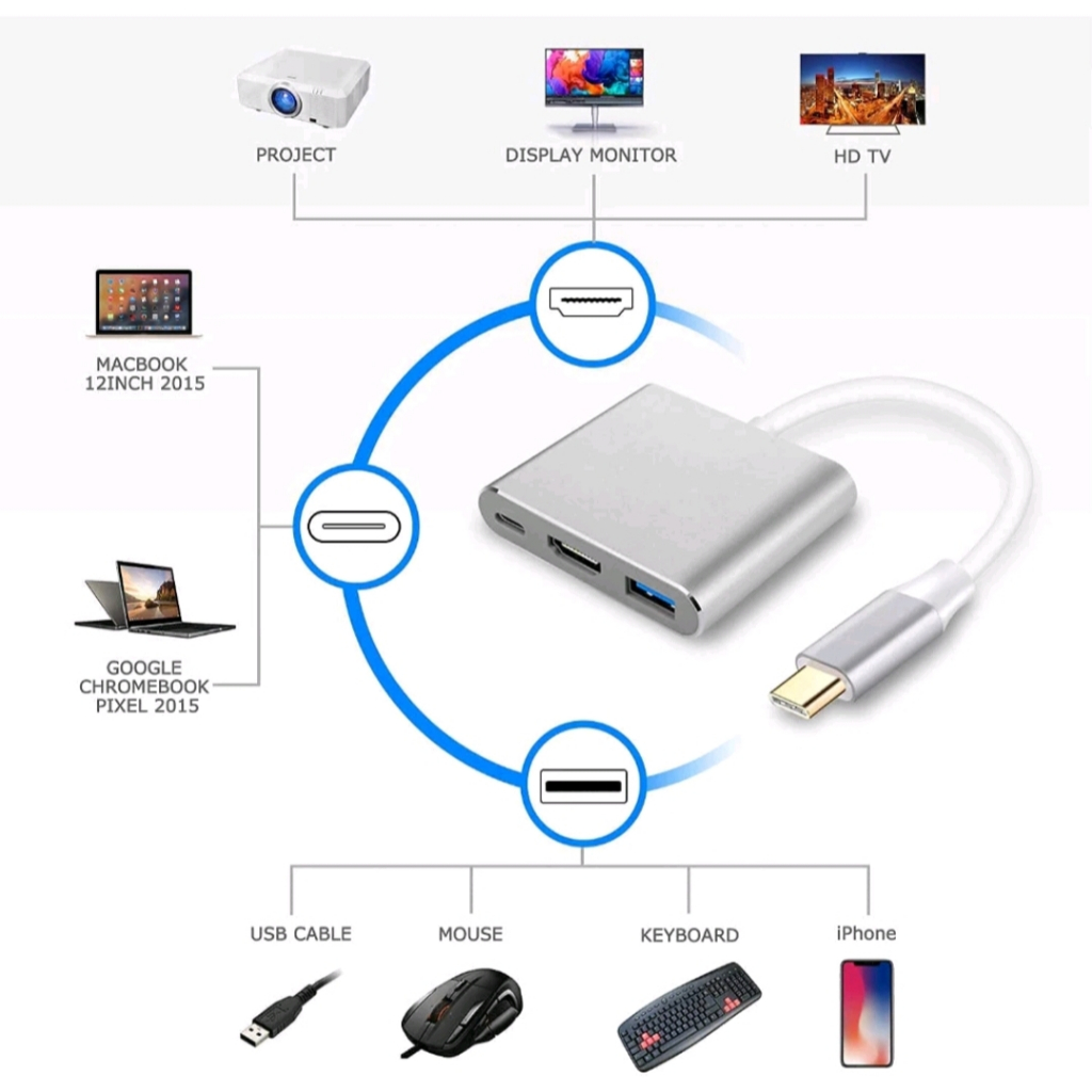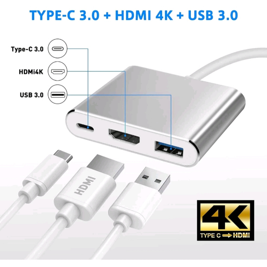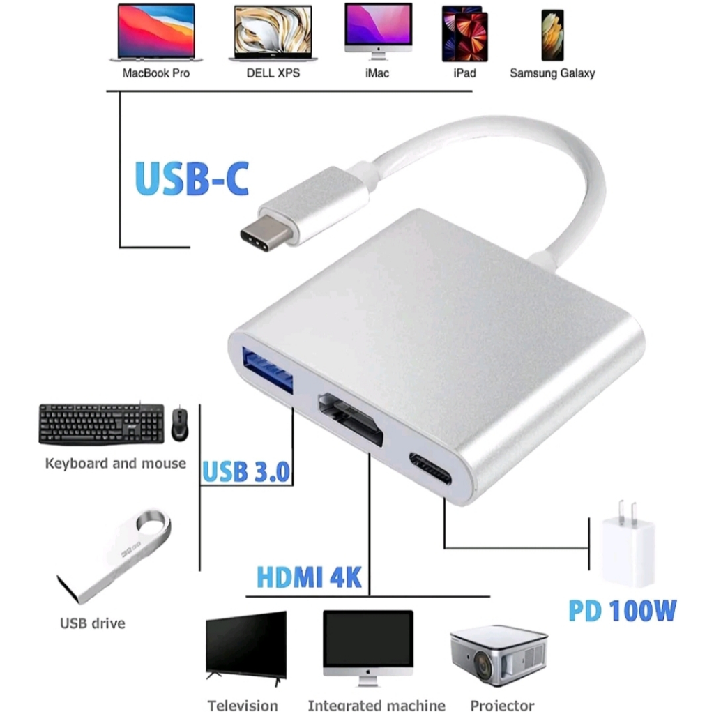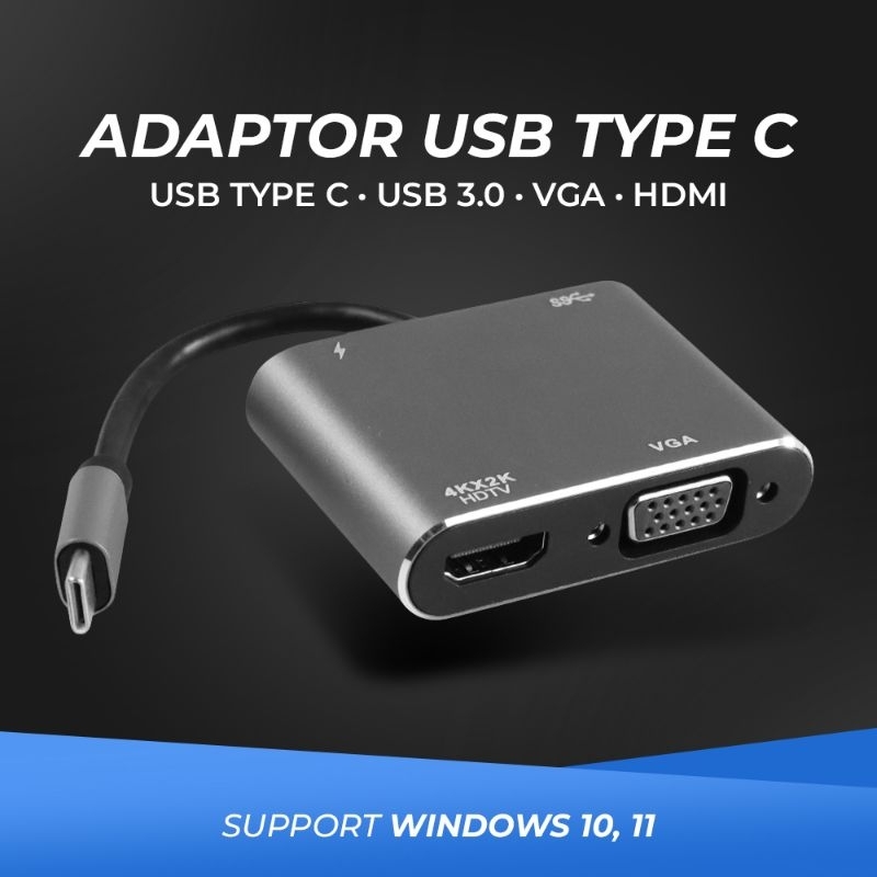 Adapter Converter Konektor USВ Type C to 3in1 4K HDMI Converter USB Hub 3.0 Type C 4in1 VGA PD CHARGING