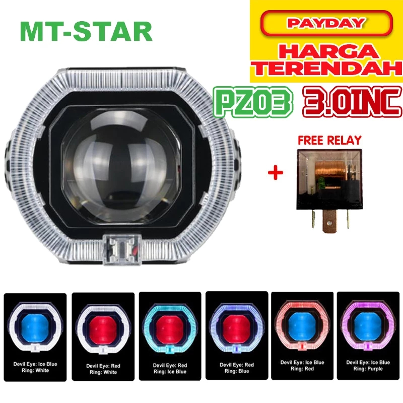lampu led motor PZ03 PROJIE BILED MATRIX X1 3 INCH & PX03 2.5 INCH HIGH LOW PUTIH BODY BLACK PLUS KIPAS