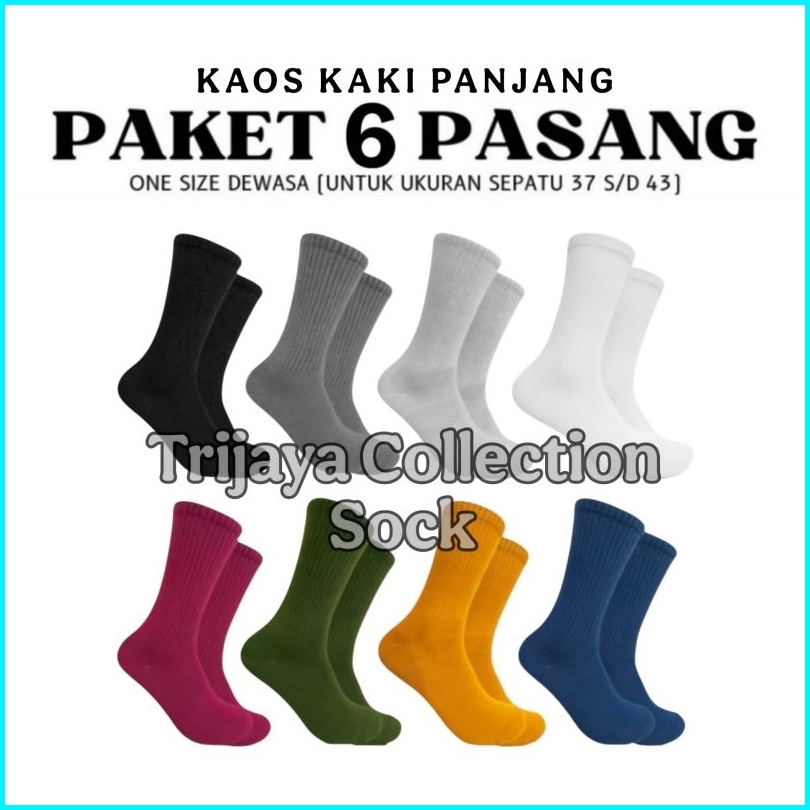 Paket 6 Pasang Kaos Kaki Polos Oldschool Panjang Pria Wanita Dewasa Kaos Kaki Olahraga Kerja Sebetis Unisex