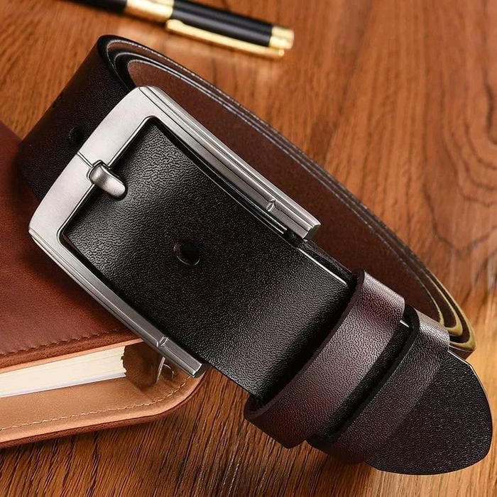 {Free Dompet} Ikat Pinggang Pria Kulit PU Import Gesper Pria Jarum Premium Import Aksesoris Sabuk Pria Bonus Dompet