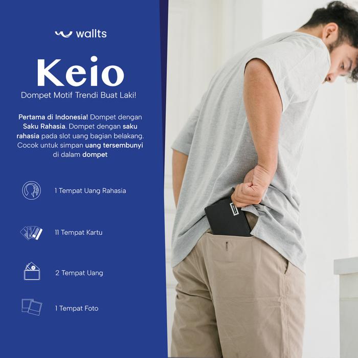 Wallts Keio Polos - Dompet Lipat kanvas uang Dan kartu Pria dan Wanita Cowok Hitam