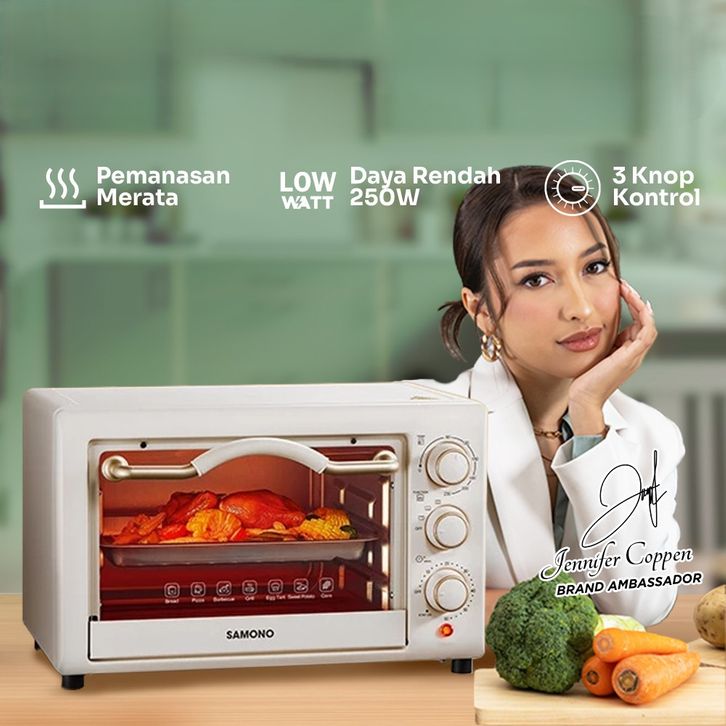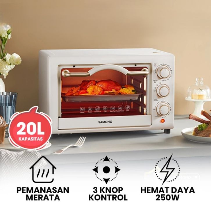 Oven Listrik Samono 20 Liter Api Atas Bawah 3 Knob Control Pemanggang Makanan Modern Low Watt Berkualitas Best Seller