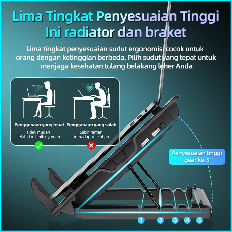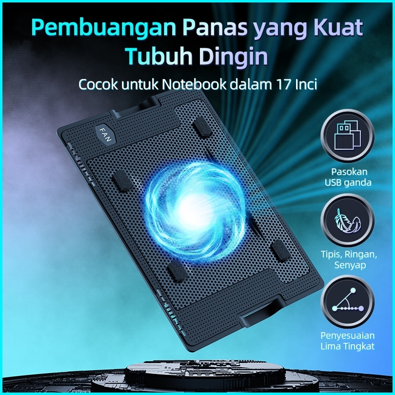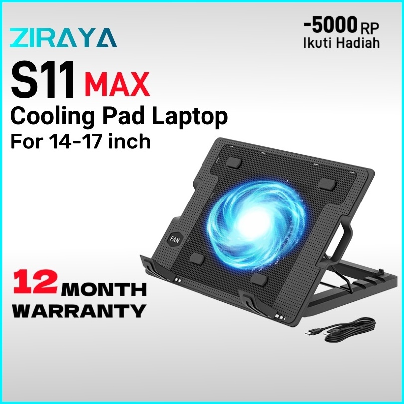 Ziraya Cooling Pad Laptop Kipas Pendingin Laptop Silent Fan Portable For 14-17 Inci