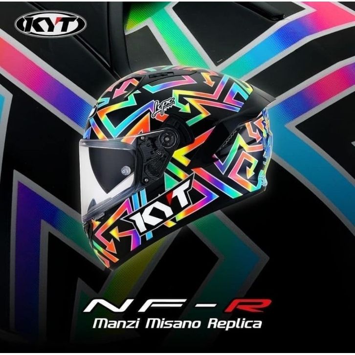 KYT NFR MANZI MISANO BLACK GLOSSY ORIGINAL | DOUBLE VISOR | HELM FULL FACE SNI ORI NF-R MOTIF MOTO GP