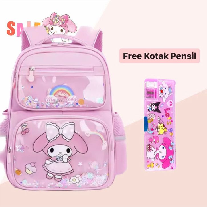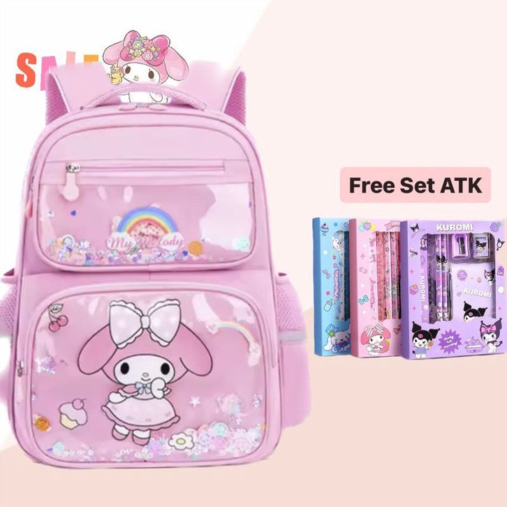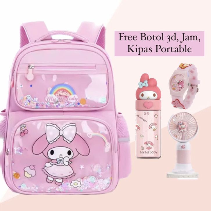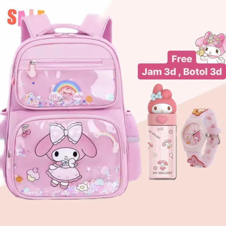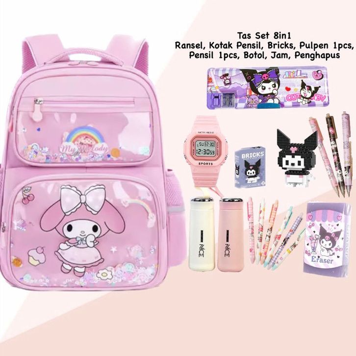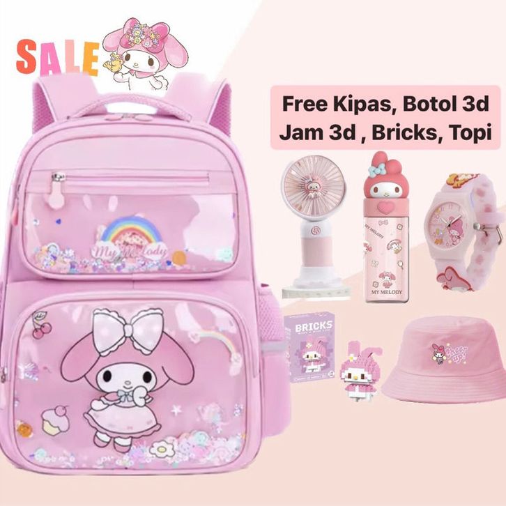 Tas Punggung Sekolah Anak Sanrio Mika MELODY 7in1 Paket Lengkap Jam Botol ATK Kar-akter TK SD SMP Terlaris Backpack