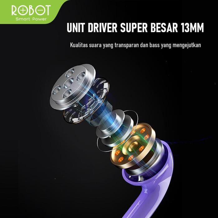 ROBOT TWS WIRELESS EARPHONE AIRBUDS T50S ORIGINAL BT 5.3 GARANSI 1 TAHUN [BISA ] - T50S WHITE