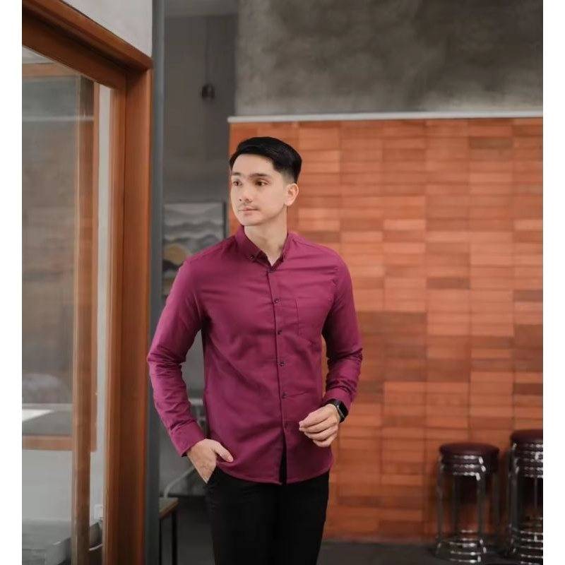 PROMO⚡ BURGUNDY KEMEJA LENGAN PANJANG BAHAN BOSS POPLIN LICIN TERBARU DAN TERPOPULER