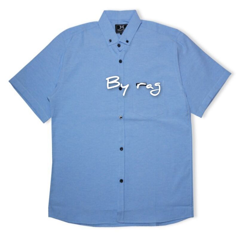 KEMEJA POLOS SOFTBLUE BIRU MUDA LENGAN PENDEK BAHAN KATUN LEMBUT PILIHAN