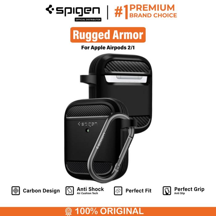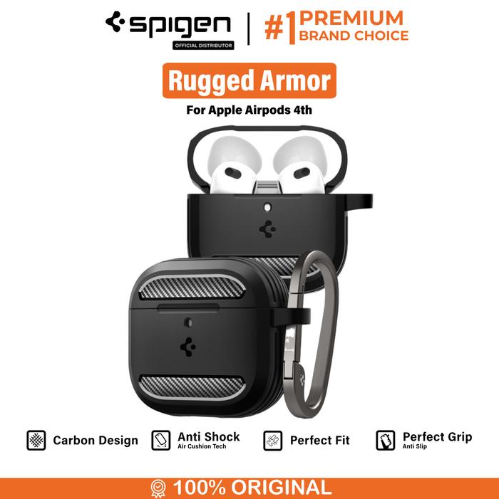 CASE FOR AIRPODS GEN 4 SPIGEN RUGGED ARMOR CARBON ANTI CRACK SHOCK COVER SLIM SOFTCASE FOR CARABINER CASING - BLACK