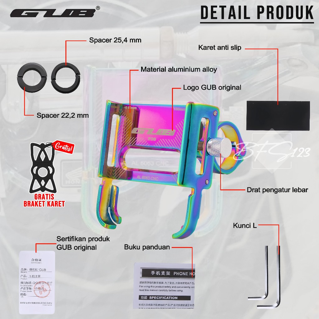 Holder hp motor besi✔Paket GUB P30 Phone Holder + GUB MD-236 Rainbow Dudukan Ponsel Aluminium Aloy/TERMURAH
