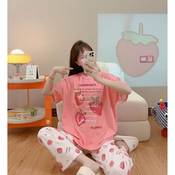 Baju tidur wanita dewasa set piyama 3 in 1 remaja lembut bahan katun poliester adem serap keringat lengan pendek panjang