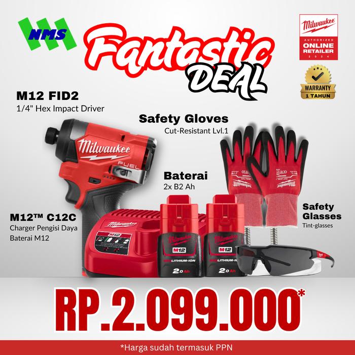 Mesin Obeng Bor Milwaukee M12 FID2-0 Hex 1/4" Compact Impact Driver 3600 rpm 170Nm Generasi 3 -