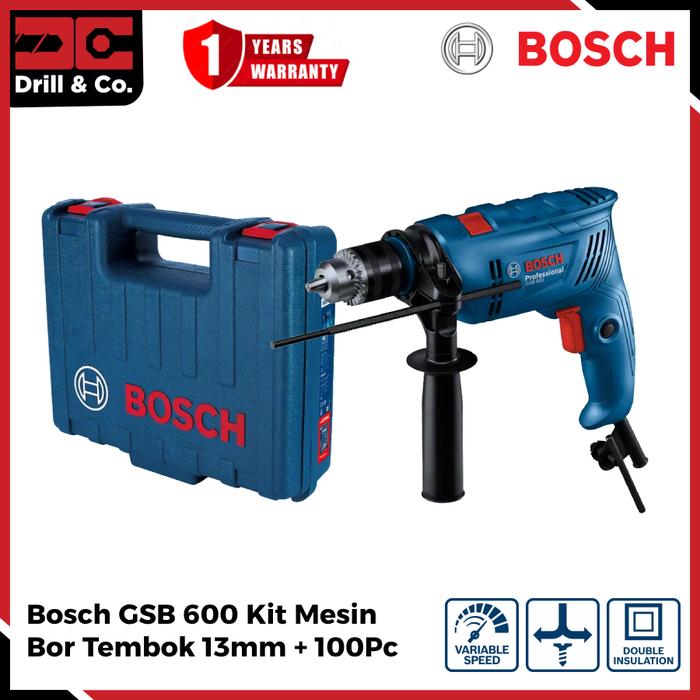 Bosch GSB 600 Kit Mesin Bor Tembok 13mm + 100Pc Acc / Bor Tembok Set 13mm