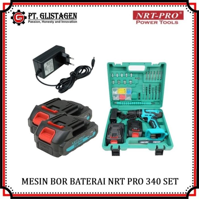 NRT PRO DC-340 Set Mesin Bor Baterai Cordless Drill Bor Tangan Impact Nrt Pro DC 340 Set