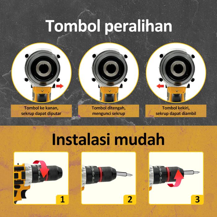TOOLBOX Mesin Bor Baterai Bor Impact Set Bor Listrik Kotak Peralatan Multifungsi Bor Beton 2 baterai