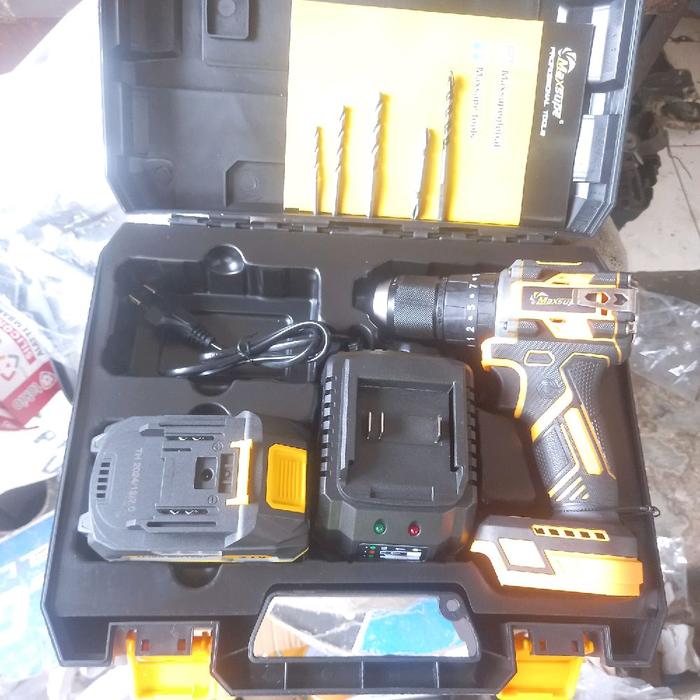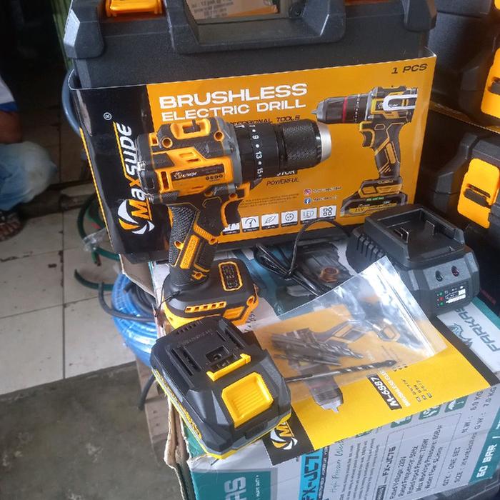 BRUSHLESS Bor Batrai 13mm Cordless Drill Impact Drill Tembok 21V M-6887 MAXSUPE