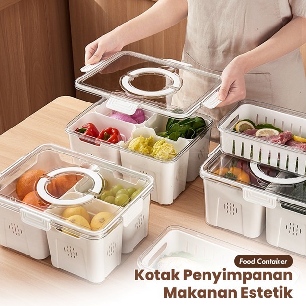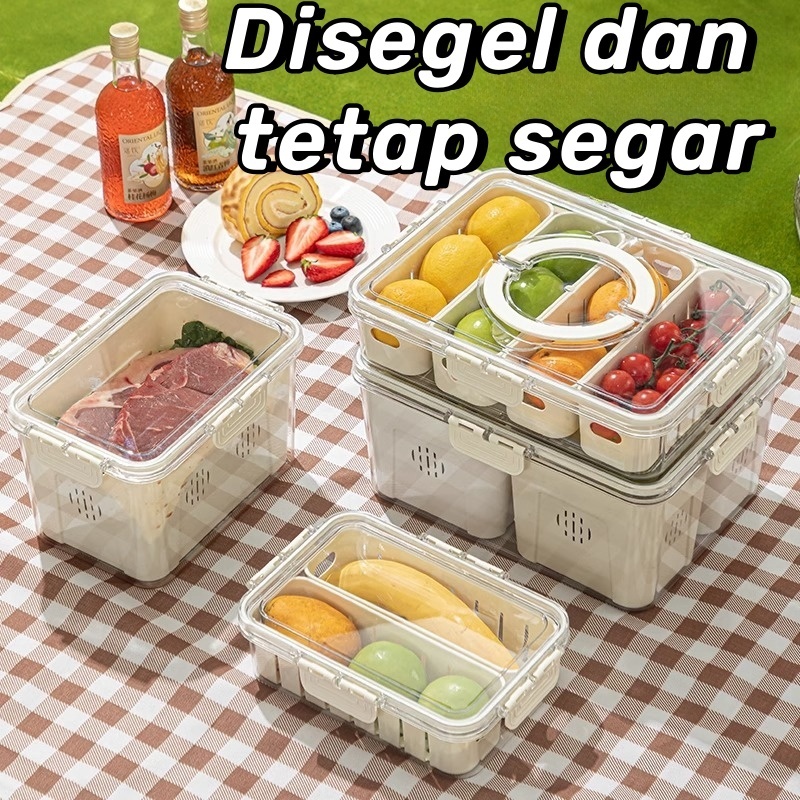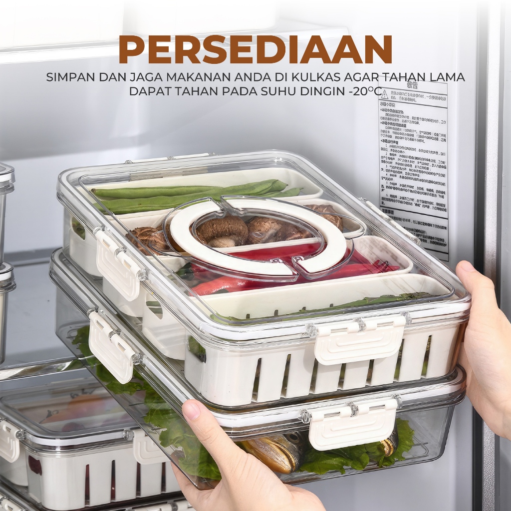 KEEP FRESH Kotak Penyimpanan Makanan Storage Toples Box Persegi Kulkas Dengan Sekat Untuk Buah Sayur / Kotak Penyimpanan