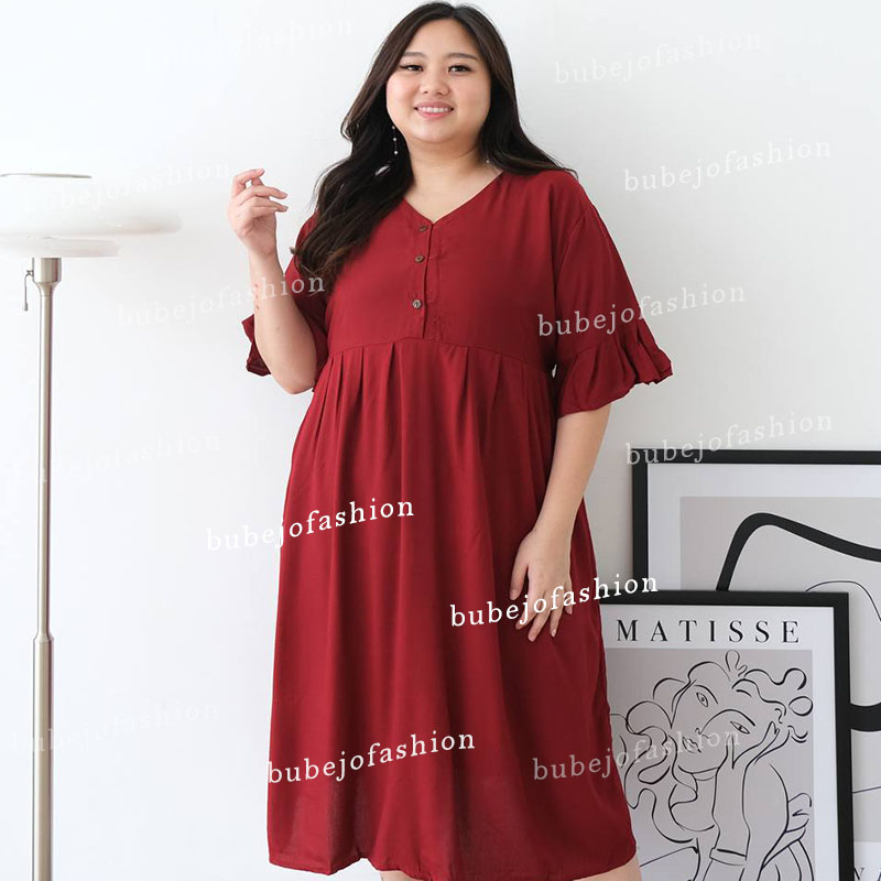 Dress Dahlia Cantik Jumbo Busui Bumil Ada 3 Kancing Hidup LD 130/Daster Jumbo Buat Bumil Busui/Daster Ibu Hamil/Daster I