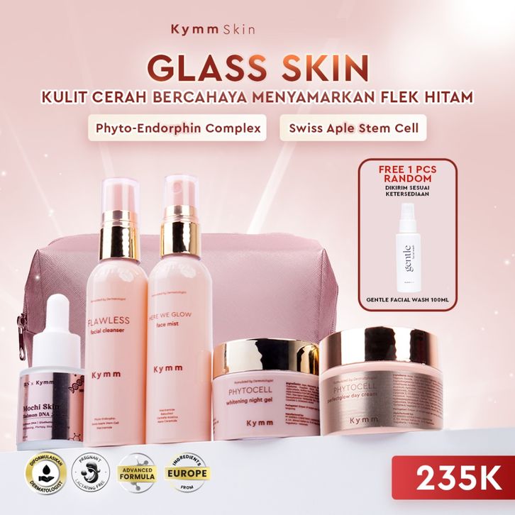 SKINCARE KYMM SKIN GLASS SKIN PHYTOCELL,DNA SALMON 6PCS+POUCH PERAWATAN MENCERAHKAN GLOWING ANTI AGING FLEK NODA HITAM