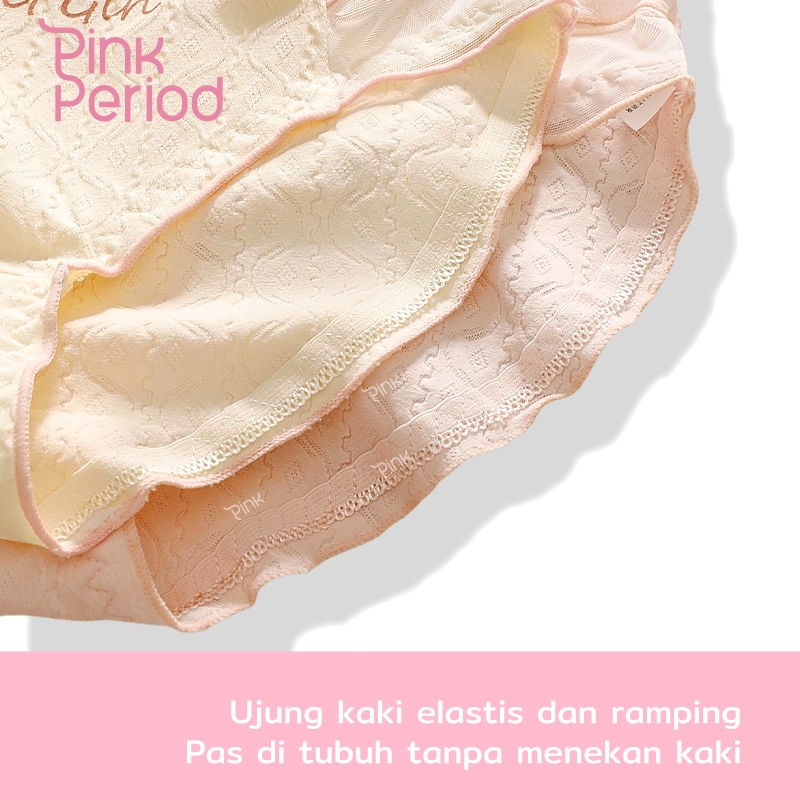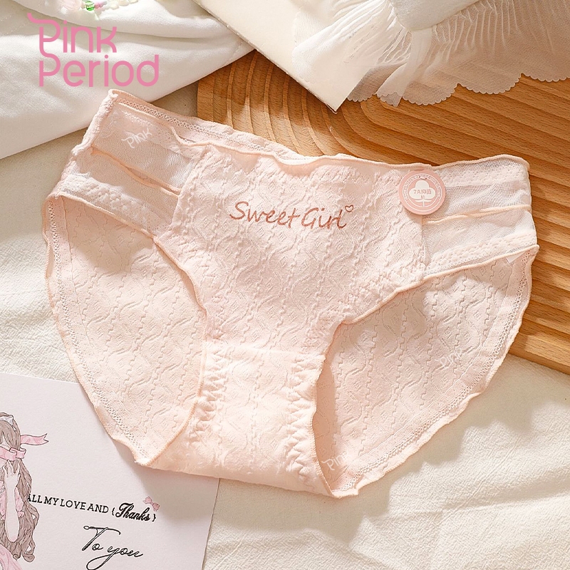 Pink Period Celana Dalam Wanita Katun Fashion CD Bernapas Nyaman Celana Dalam Katun Dengan Jahitan Jala Desain Jacquard