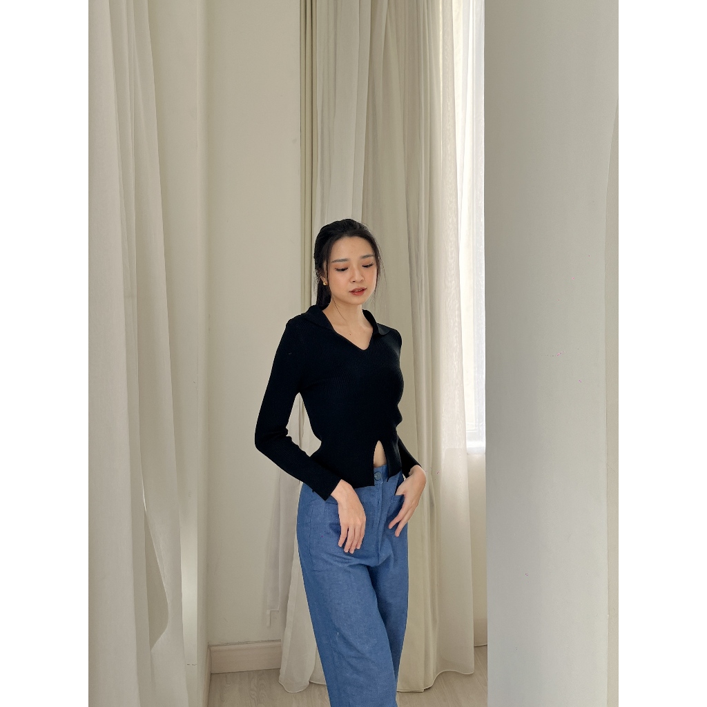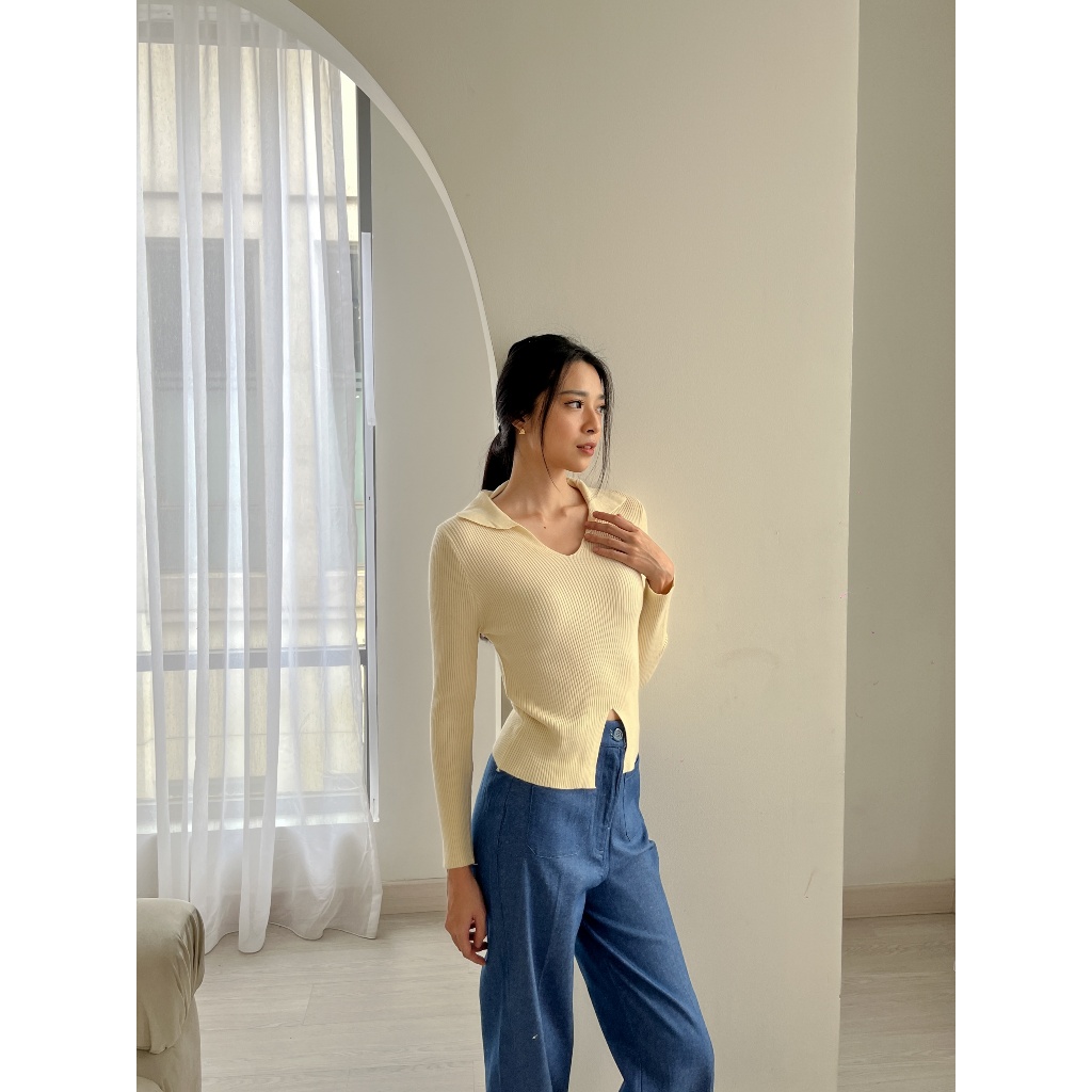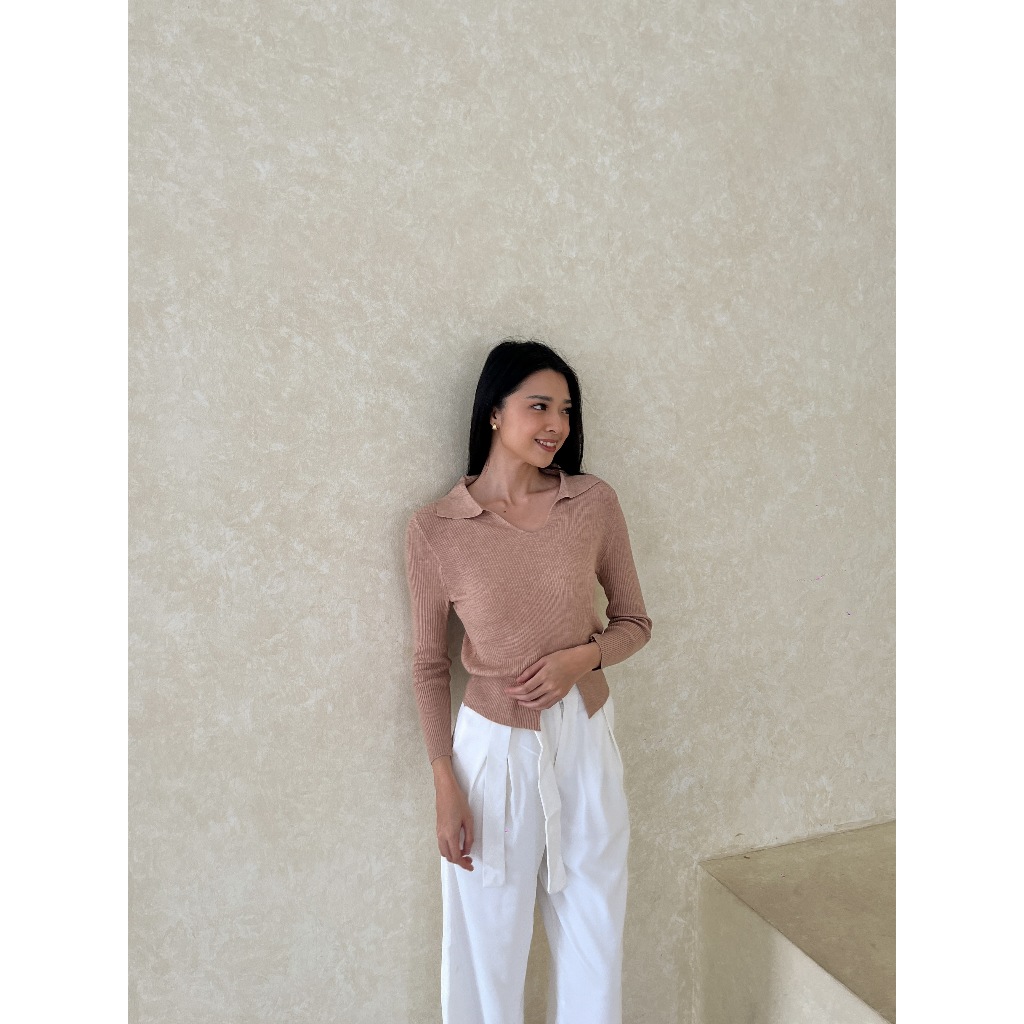 KAORITHELABEL | SEINA KNIT T0P COLLAR | BLOUSE LONG SLEEVE - ATASAN RAJUT WANITA - CASUAL T0P - KOREAN STYLE