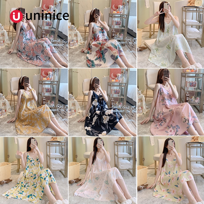 RUNINICE [] Suspender Nightdress Wanita Baju Tidur Daster Fashion Kekinian Piyama Longgar 45-75kg