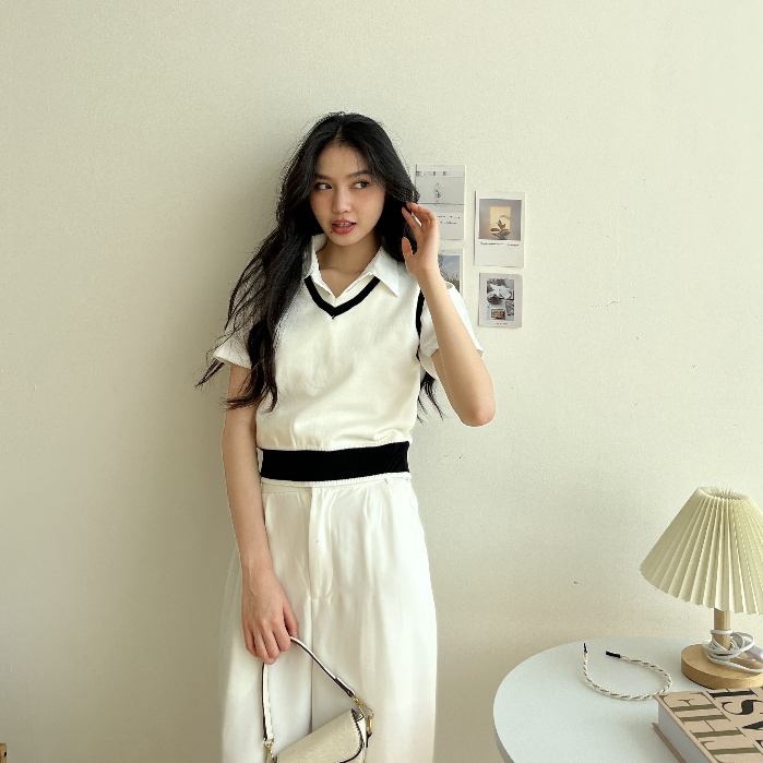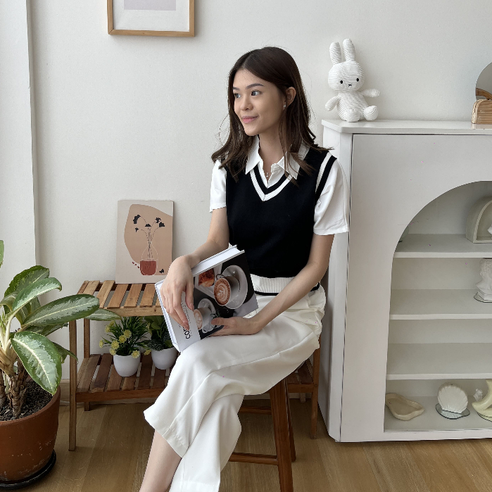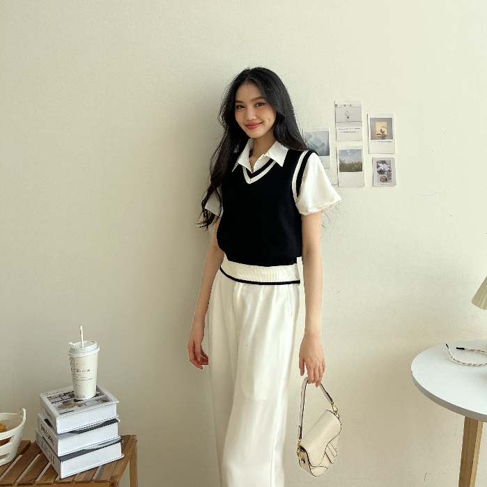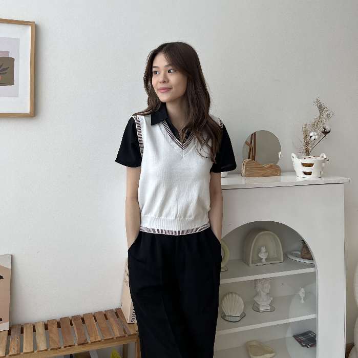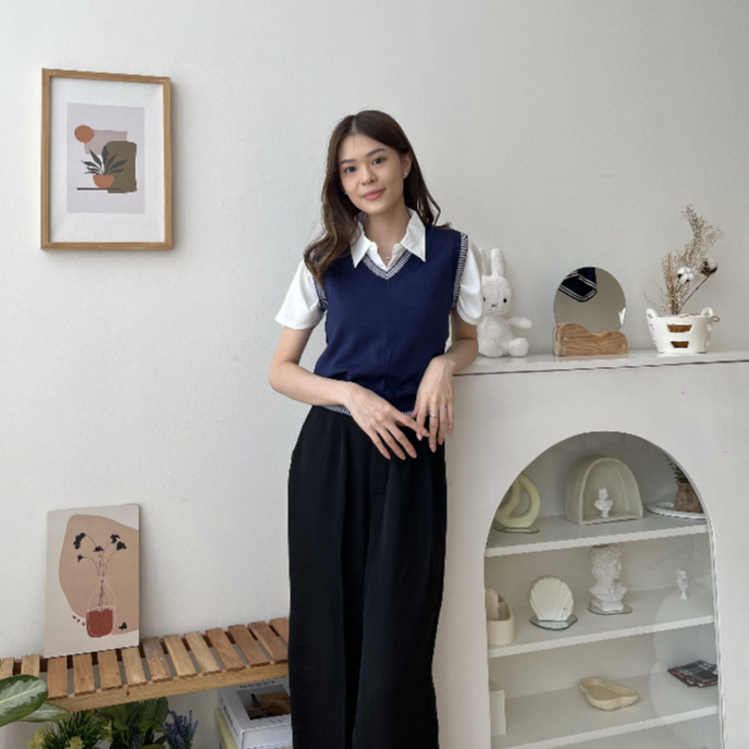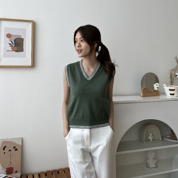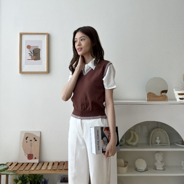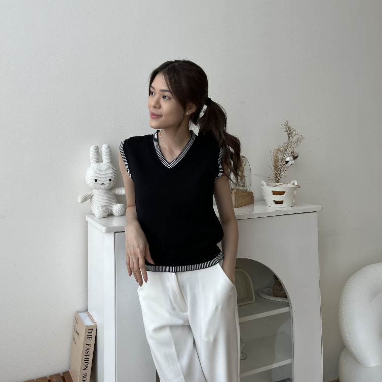 KAORITHELABEL | KARU SLEEVELESS VEST OUTER T0P | ROMPI RAJUT PREMIUM - ATASAN KNIT - BLOUSE WANITA - OUTER KERAH V-NECK