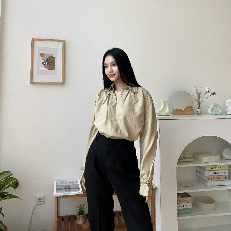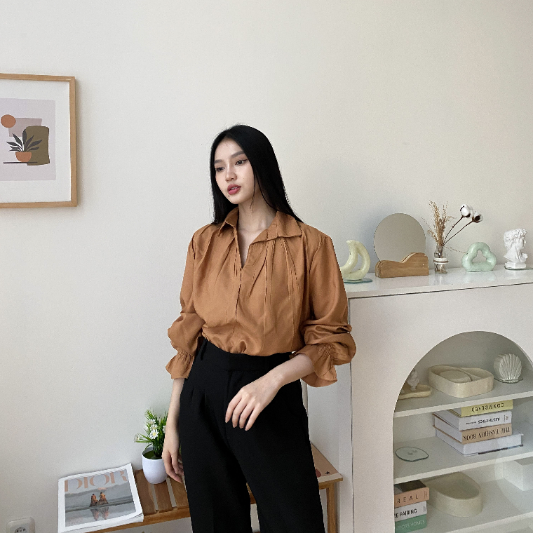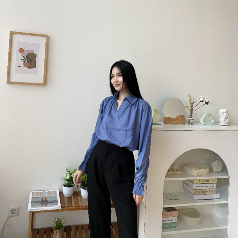 KAORITHELABEL | DAILY OFFICE T0P | ATASAN LENGAN PANJANG - CASUAL BLOUSE - KOREAN T0P