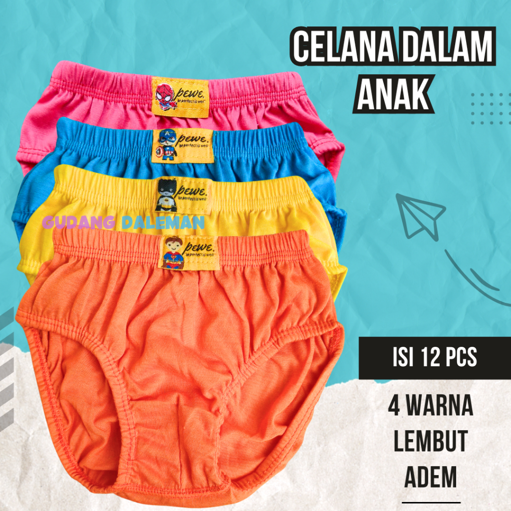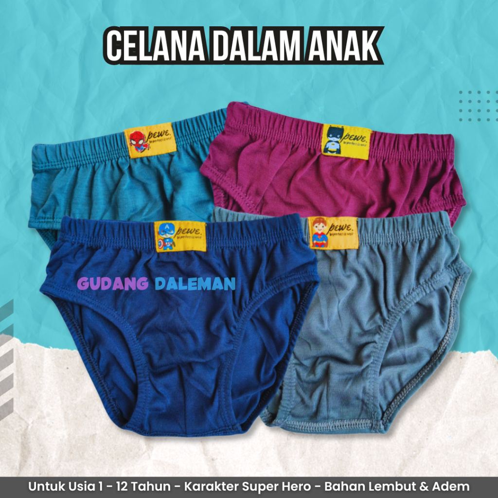 12 Pcs Celana Dalam Anak Laki Laki Logo Karakter Kartun Super Hero CD Cowok